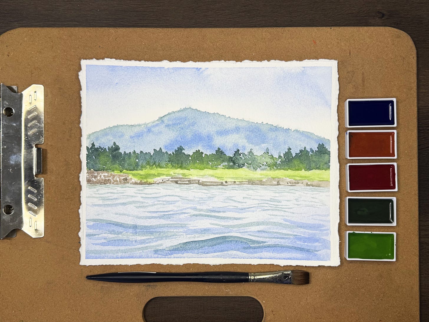 In this tutorial, we will be using more wet on dry techniques, plus a little color mixing to create a beautiful landscape with trees, a sandy beach and water. Yep, we are painting waves!